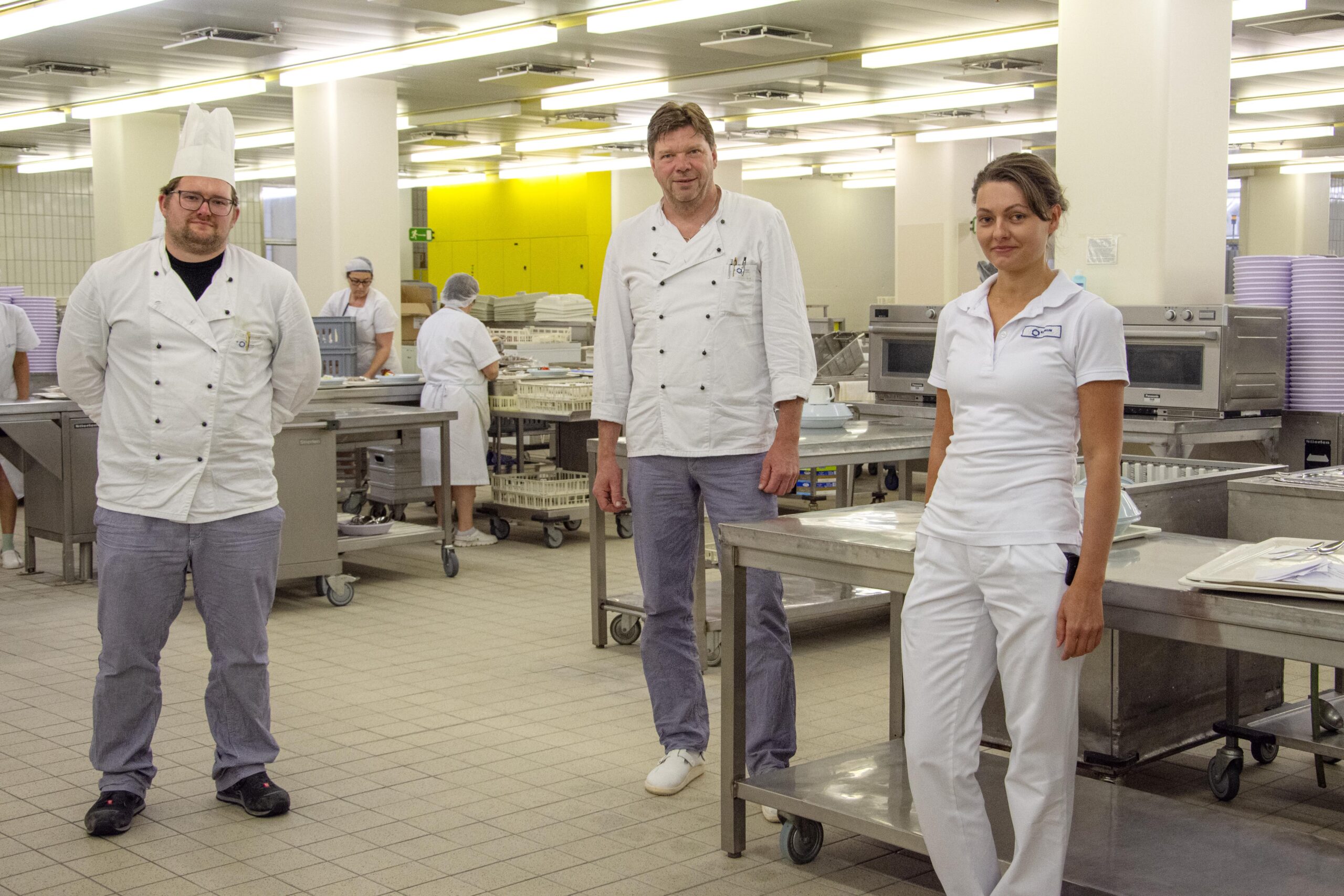 „Wir hatten schon vor Corona sehr hohe Hygienestandards, unsere Mitarbeiter sind speziell dafür sensibilisiert“, erklärt Walter Zieglmeier, Leiter der Großküche des Klinikums Ingolstadt. „Dahingehend hat sich hier also gar nicht so viel geändert.“ Die regelmäßige Händedesinfektion und ein hygienischer Umgang mit Lebensmitteln sei schon vor der Pandemie selbstverständlich gewesen. Zusatzschulungen für das Küchenpersonal, wie man sich in dieser speziellen Situation verhält, gab es trotzdem. Außerdem haben ein paar Mitarbeiter gefehlt, die beispielsweise keine Kinderbetreuung hatten. Das Personal wurde trotzdem nicht knapp, was Zieglmeier vor allem dem großen Engagement seiner Mitarbeiter zuschreibt: „Hier geht ein riesen Lob an das Team, alle sind sehr diszipliniert!“