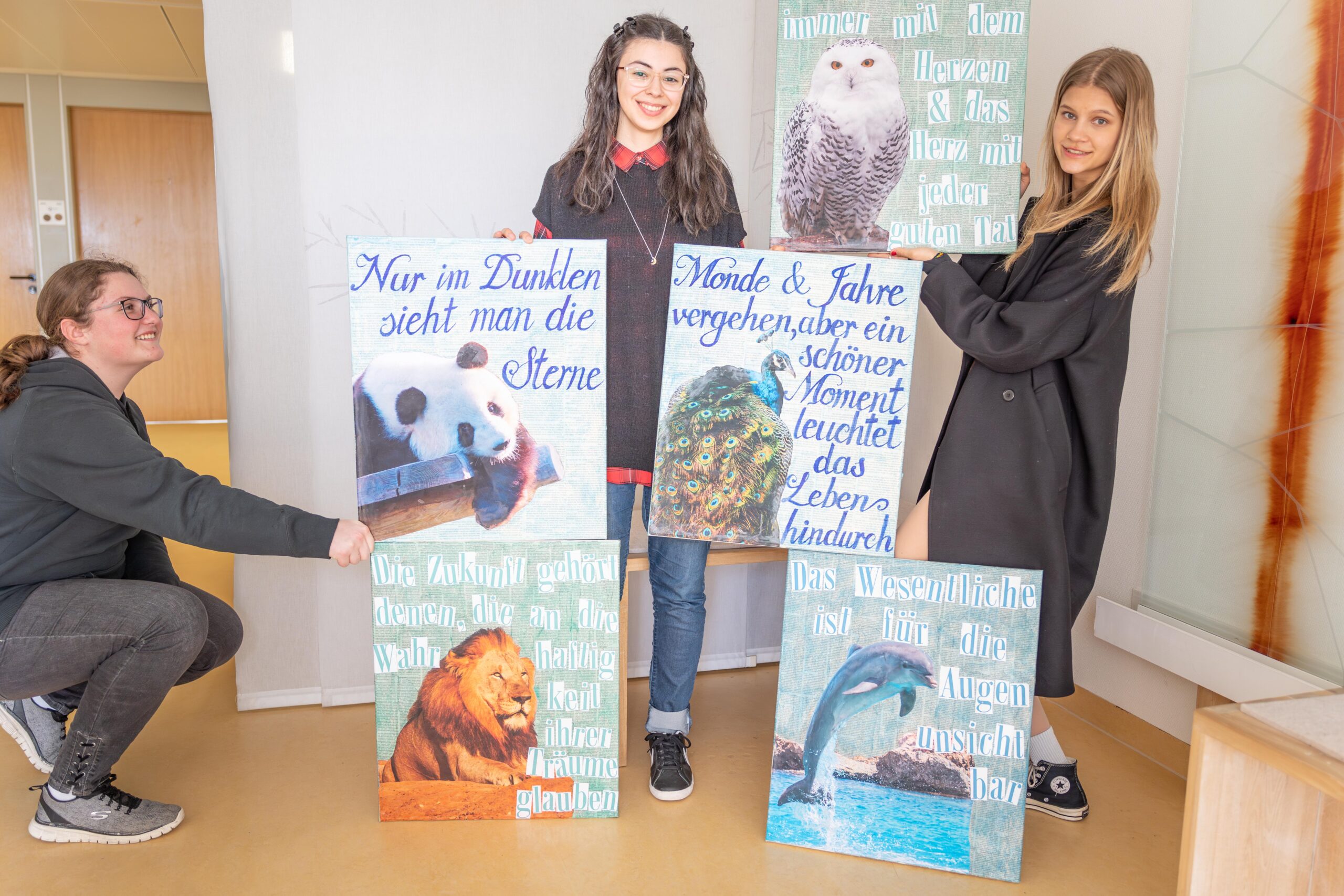 Die Bilder haben alle ihre ganz eigenen Botschaften: „Wir möchten jungen Menschen aus der Region die Möglichkeit geben, sich kreativ mit dem Thema der palliativen Versorgung auseinanderzusetzen. Die Verschönerung unserer Abteilung ist ein erfreulicher Nebenaspekt.“ In der Palliativstation werden Patient*innen versorgt, deren Erkrankungen nicht oder nicht mehr heilbar sind.