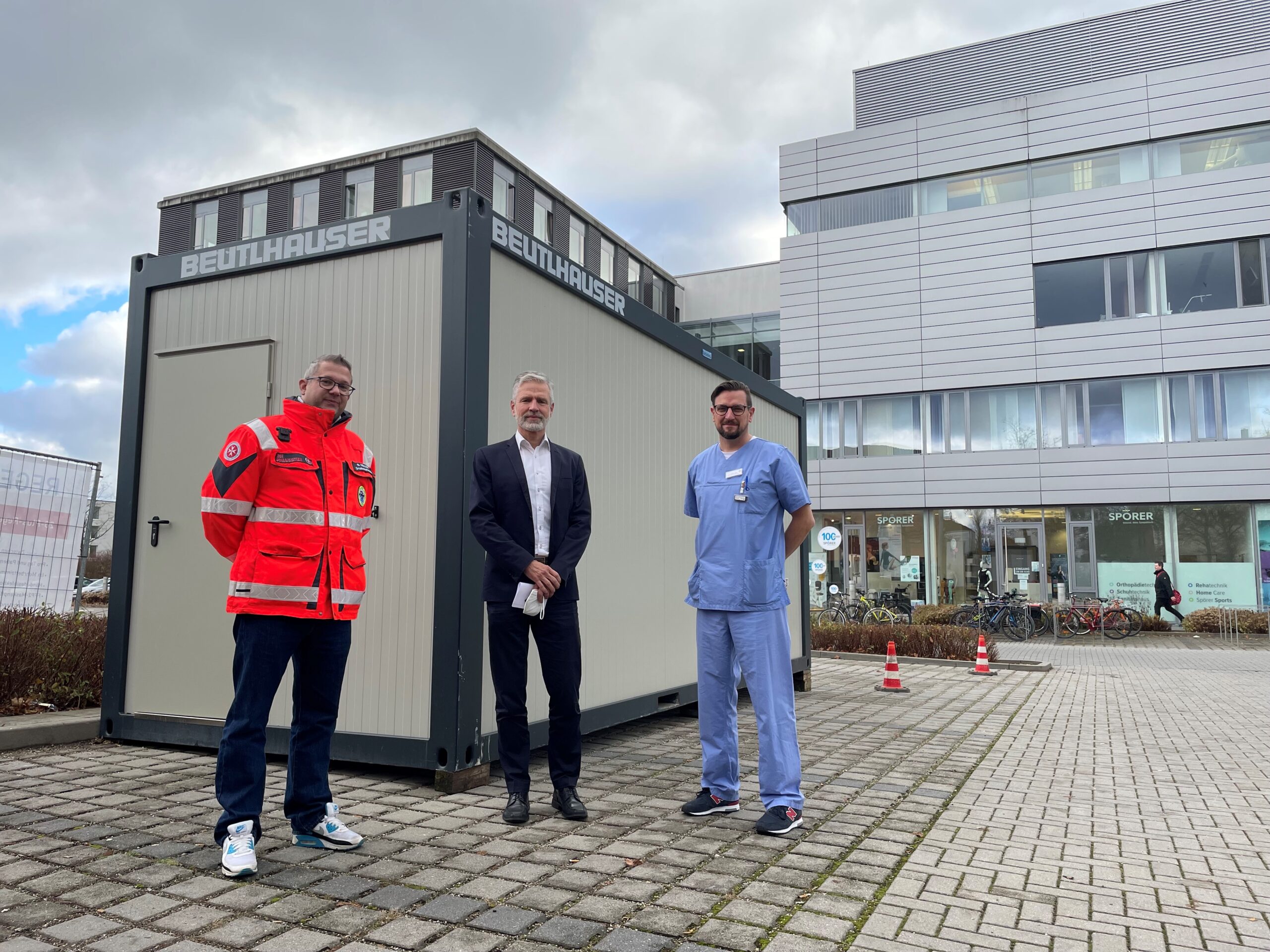 Der Pandemie-Beauftragte des Klinikums, Dr. Stephan Steger, Direktor der Notfallklinik, dankte Sven Müller, Ortsbeauftragter der Johanniter Unfall-Hilfe in Ingolstadt, für die gute Zusammenarbeit in der Corona-Krise. „Die Öffnungszeiten wurden extra auf die Bedürfnisse der Besucher von Patienten abgestimmt. Das Angebot ist aber nicht nur für die Besucher des Klinikums interessant, sondern für alle Ingolstädter, die einen Schnelltest benötigen.“