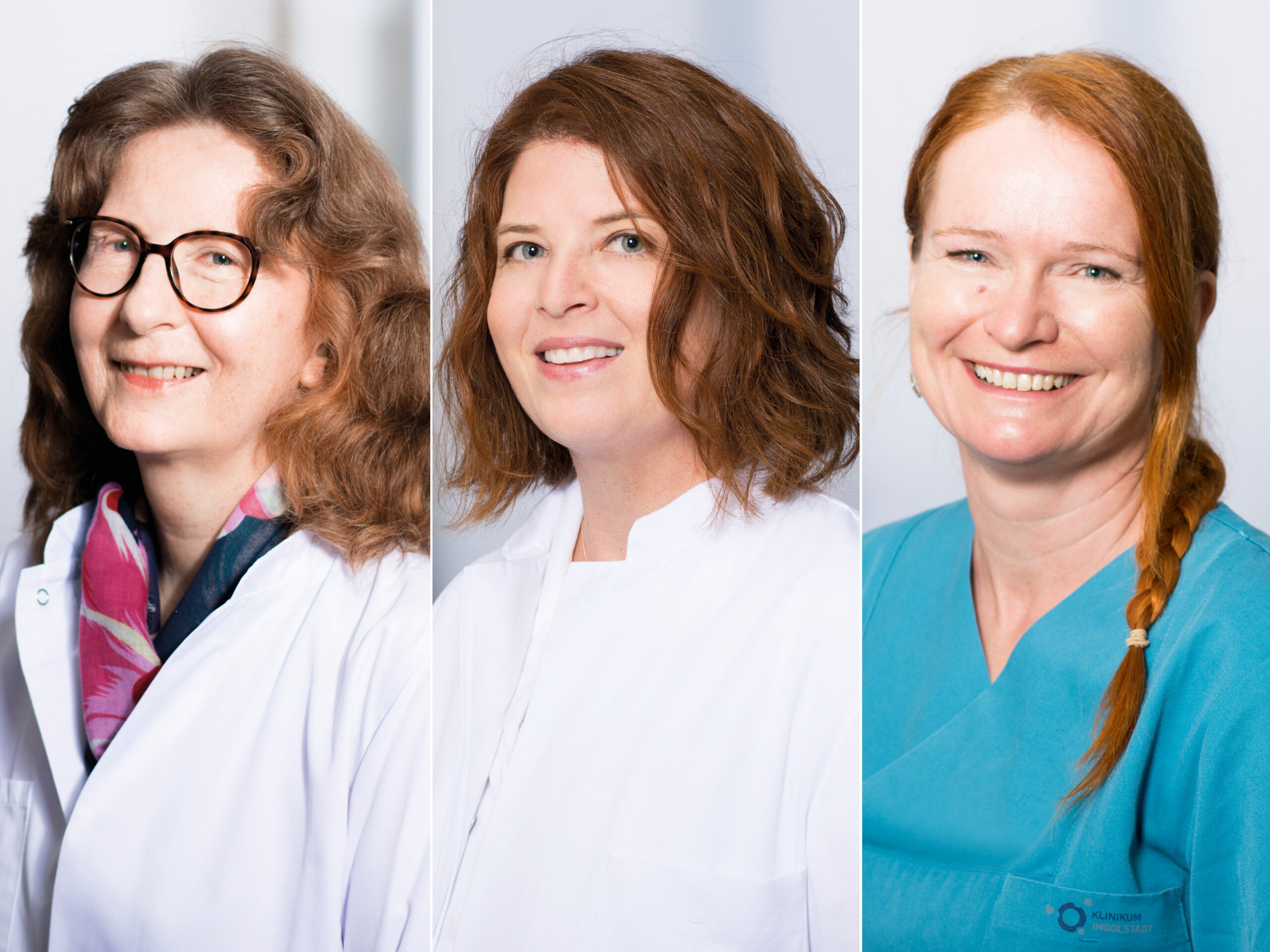 Am Dienstag, 5. September, können Betroffene und Angehörige in einer Telefonaktion von Klinikum Ingolstadt und Donaukurier ihre Fragen zum Thema „Gang- und Gleichgewichtsstörungen im Alter“ an medizinische Expertinnen des Klinikums stellen. Prof. Dr. Birgit Herting (v.l.), Direktorin der Klinik für Akutgeriatrie und Neurologin (Tel. 0841-9666 265), Dr. Katharina Walther, Leitende Oberärztin und Internistin (Tel. 0841-9666 266) sowie Annett Peichl, Leitende Physiotherapeutin (Tel. 0841-9666 267), sind von 16 Uhr bis 17:30 Uhr für Sie erreichbar.