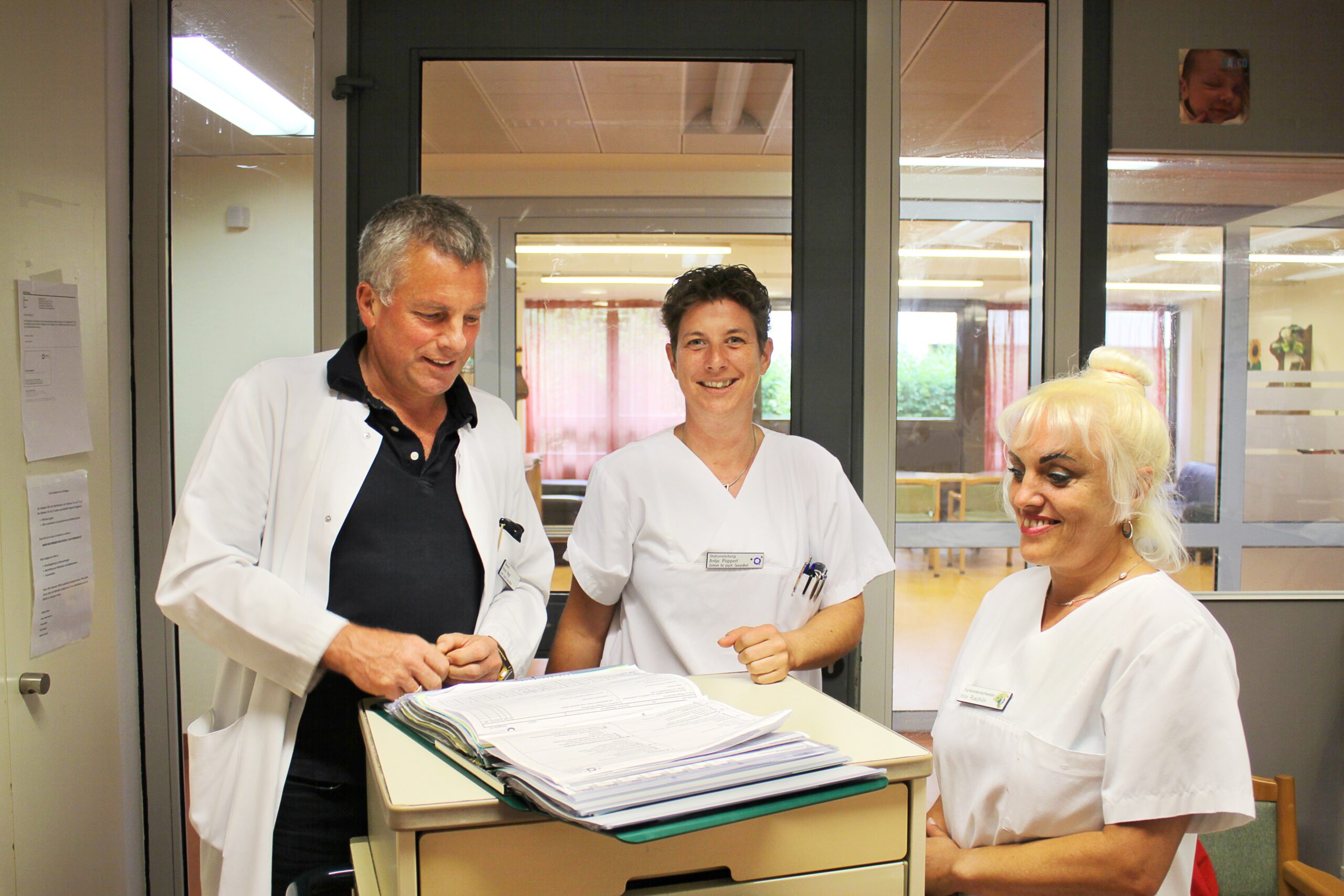 Wer in der Gerontopsychiatrie arbeitet, der braucht aber nicht nur ein gutes Gespür für die Patientinnen und Patienten, sondern oftmals auch für die Angehörigen: „Es ist für eine Ehefrau oder einen Ehemann, aber auch für Kinder nicht leicht, wenn sich der Lebenspartner oder ein Elternteil im Alter auf Grund einer Erkrankung immer mehr verändert. Wird dann ein Klinikaufenthalt notwendig, machen sich die Angehörigen Sorgen, wie es dem geliebten Menschen bei uns geht. Und es kommen oft auch Gedanken an die Zeit nach dem Klinikaufenthalt dazu. Gerade ältere Lebenspartner erkennen, dass sie Pflege und Betreuung alleine nicht schaffen können“ , hat Antje Pöpperl in vielen Gesprächen mit Angehörigen erfahren. Die Mitarbeiterinnen und Mitarbeiter helfen dann, die Zeit nach dem Klinikaufenthalt zu organisieren, sie informieren über Hilfsmöglichkeiten und nicht selten sind sie auch für die Angehörigen wichtige „seelische Stützen“.